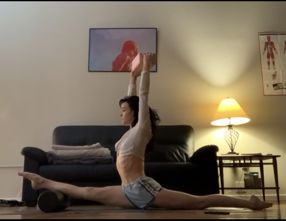 You'll get access to a 1 hour and 40 minute recording of my virtual contortion class where I demo every exercise and give proper cues.